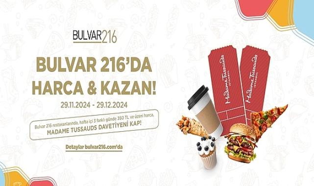 Ataşehir’in sosyal yaşam merkezi Bulvar 216, yedikçe kazandıran kampanyalarına devam ediyor. Bulvar 216’nın yedikçe kazandıran kampanyasında, hafta içi 3 farklı günde, 3 farklı restoranda, tek seferde 350 TL ve üzeri yapılacak 3 adet harcama karşılığı 1 Madame Tussauds İstanbul davetiyesi hediye.Anadolu Yakası’nda damak tadına düşkün ziyaretçilerine bütçe dostu fırsatlar sunan Bulvar 216, lezzet dolu kampanyalarıyla ve dünya mutfaklarından eşsiz tatları bir araya getiren restoranlarıyla, yemek deneyimini unutulmaz kılmaya devam edecek.Kampanyaya katılmak için Bulvar 216 ortak alanlarında yer alan QR kodu okutup her bir harcama fişini sisteme yüklemek yeterli.Bulvar 216, geniş oturma alanları, keyifli atmosferi ve yenilikçi mutfak anlayışıyla, sadece yemek yemek için değil, dostlarla keyifli anlar paylaşmak için de ideal bir adres. Dünya mutfağından yerel tatlara kadar uzanan geniş menü seçenekleri ile herkesin damak zevkine uygun bir alternatif bulabileceği bu kampanyayı kaçırmayın!Kampanya 29 Aralık’a kadar geçerli olup, detaylı bilgi için bulvar216.com adresini ziyaret edebilirsiniz. Kaynak: (BYZHA) Beyaz Haber Ajansı
