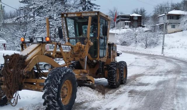 Bursa Gemlik'te karla mücadeleye devam