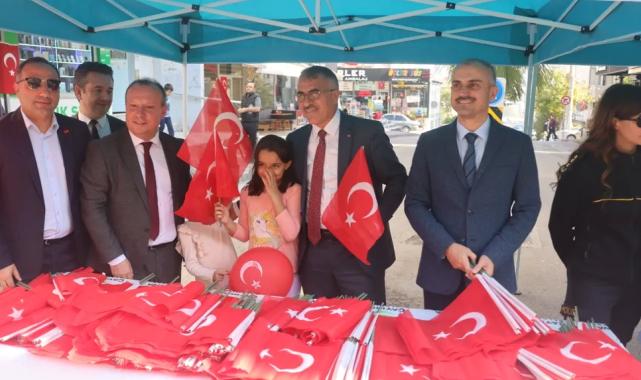 Çayırova Kaymakamı Ahmet Önal, Çayırova Belediye Başkanı Bünyamin Çiftçi ve kent protokolü, 29 Ekim Cumhuriyet Bayramı öncesinde Fatih Caddesi’nde esnaf ve vatandaşlara Türk Bayrağı dağıttı.