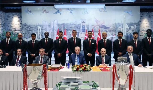 Ziyarette, Galatasaray Kulübü Başkanı Dursun Özbek, Teknik Direktör Okan Buruk ve futbolcular yer aldı.Cumhurbaşkanı Erdoğan, Galatasaraylı sporcuları ve teknik ekibi tebrik ederek, başarılarının devamını diledi.