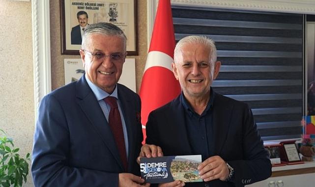 Demre Belediye Başkanı Fahri Duran, Kemer Belediye Başkanı Necati Topaloğlu’na makamında nezaket ziyaretinde bulundu.