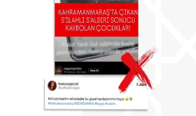 Cumhurbaşkanlığı İletişim Başkanlığı Dezenformasyonla Mücadele Merkezi (DMM), Kahramanmaraş’taki olay sonrası sosyal medyada yayılan “kayıp çocuklar var” iddialarının asılsız olduğunu açıkladı.