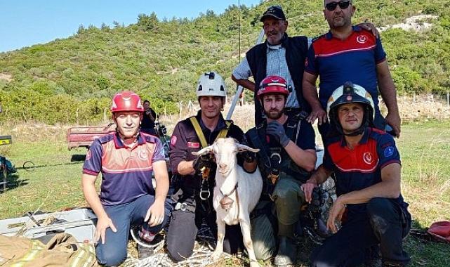 Menderes’te bir köylünün yardımına koşan İzmir Büyükşehir Belediyesi’ne bağlı itfaiye ekipleri, 25 metrelik kuyuya düşen keçiyi kurtararak sahibine teslim etti.