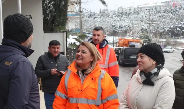 İzmit Belediye Başkanı Fatma Kaplan Hürriyet yoğun kar yağışı sonrasında da sahaya inerek esnafı ziyaret etti.