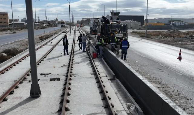 Konya tramvay hattı inşaatında trafiğini aksatmadan titiz çalışma