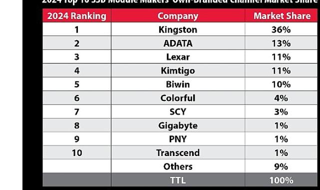 TrendForce'a Göre Kingston, 2024 Yılında Kanal SSD Sevkiyatlarında Liderliğini Korudu