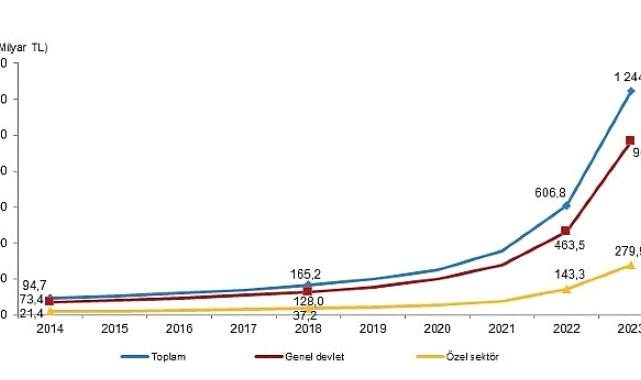 Cari sağlık harcaması 2023 yılında bir önceki yıla göre %104,1 artarak 1 trilyon 134 milyar 894 milyon TL'ye yükseldi. Sağlık harcamaları kapsamındaki yatırımlar %114,9 artarak 109 milyar 343 milyon TL'ye ulaştı.