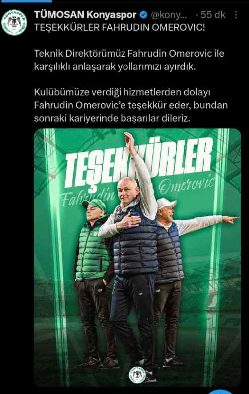 "Teknik Direktörümüz Fahrudin Omerovic ile karşılıklı anlaşarak yollarımızı ayırdık. Kulübümüze verdiği hizmetlerden dolayı Fahrudin Omerovic’e teşekkür eder, bundan sonraki kariyerinde başarılar dileriz."