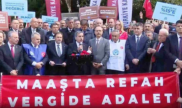 Türkiye Kamu-Sen üyeleri, TBMM önünde memur ve emeklilere "ek zam ve refah payı verilmesi" talebiyle toplandı. Burada basın açıklaması yapan Genel Başkan Önder Kahveci, bütçeden kamu çalışanlarının hak ettiği payı almak için toplandıklarını belirtti.Meclis önündeki basın açıklamasında Türkiye Kamu-Sen üyeleri ellerinde; "2008 öncesi ve sonrası ayrımı kaldırılsın" , "Aynı sofrada farklı ekmek olmaz" , "Memurun emeği de işçinin emeği kadar değerli", "Maaş bordromu gören bağış yapmak istiyor", "Vergi dilimi yüzde 15’e sabitlensin" yazılı dövizler taşıdı.TBMM'DEKİ BÜTÇE GÖRÜŞMELERİ DETAYITBMM'de cuma günü 2026 yılı bütçesinin görüşülmeye başlanacağını hatırlatan Kahveci, "Ama o bütçede memur, emekli, alın teri yok. Var olan rakamlar, hedeflerin ve hayallerin ardına gizlenmiş bir adaletsizliktir." ifadelerini kullandı.Açıklamasında, kamunun kendi alacağını koruduğu kadar memurun hakkını da koruması gerektiğini vurgulayan Kahveci, "Kamu, alacaklarına uygulayacağı oranları kamuoyuyla paylaşacak. Biz istiyoruz ki bizden alacaklarınıza uygulamış olduğunuz oranı memurlarımıza ve emeklilerimize de uygulayın. Kamu çalışanlarına ek zam verilsin. Maaşlara refah payı eklensin, kaybolan alım gücü mutlaka telafi edilsin, statü adaletsizliğine son verilsin." dedi."Mutfakta yangın büyüyor, maaş artışı yangını söndürmüyor körüklüyor"Kahveci, "Açıklanan son rakamlardan görüyoruz ki enflasyon yeniden tırmanışa geçti, mutfakta yangın büyüyor. Ne var ki, 2026’da memur ve emekliler için öngörülen yüzde 11 artı yüzde 7 maaş artışı, bu yangını söndürmeye değil, körüklemeye yarıyor. Bu rakamlar, memura değil; enflasyona, vergiye, hayat pahalılığına çalışıyor. Temmuz ayında yapılan zam, daha ilk ayda buharlaştı. Bugün itibarıyla kamu çalışanı 2,5 puan alacaklı, ama alacağı, veresiye defterinde kayıtlı. Yıl sonuna kadar bu fark büyüyecek; maaşlar eriyecek, umutlar tükenecek. Bir tarafta vergi, harç, ceza artışlarıyla kendi alacaklarını güncelleyen kamu diğer tarafta aynı ekonomik gerçekleri görmezden gelen maaş politikaları var" dedi."Toplu sözleşme döneminde işçilere yüksek, memurlara düşük zam öngören anlayış, memuru 'üvey evlat' konumuna düşürmüştür" "Kamu kendi alacağını koruduğu kadar, memurunun hakkını da korumalıdır" diyen Kahveci, şöyle konuştu:"Orta Vadeli Program’da 2026 yılı için enflasyon yüzde 16, büyüme yüzde 3,8 olarak öngörülüyor. Yani kümülatif olarak bakıldığında pastada cari olarak yüzde 21’lik bir gelişmeden söz ediyoruz. Ama bize reva görülen yüzde 11 artı yüzde 7 artış. Bu adalet midir, hakkaniyet midir? Bu, kamu çalışanlarının alım gücünün düşeceğinin resmi ilanıdır. Biz diyoruz ki: Bu bütçede memura refah payı yoksa, adalet yoktur. Bu bütçede ek zam yoksa, hakkaniyet yoktur. Kamu çalışanlarına ek zam verilsin. Maaşlara refah payı eklensin. Kaybolan alım gücü mutlaka telafi edilsin. Statü adaletsizliğine son verilsin. Kamuda ücret adaleti kalmamıştır. Aynı işi yapan insanlar, statü farkı bahanesiyle farklı maaşlar alıyor. Toplu sözleşme döneminde işçilere yüksek, memurlara düşük zam öngören anlayış, memuru 'üvey evlat' konumuna düşürmüştür. Biz kimsenin kazancına göz dikmiyoruz. Biz sadece adalet istiyoruz. Biz sadece eşitlik istiyoruz. Biz sadece insanca yaşamak istiyoruz.""Artık sabrın sınırındayız"Konuşmasında, "Bu bütçe geçmeden, emekli hakkı teslim edilmelidir. Sayın Cumhurbaşkanının sözü var" diyen Kahveci konuşmasını şu sözlerle tamamladı:"Birinci dereceye gelen tüm memurlara 3600 ek gösterge verilecekti. Ayrıca, yıllardır unutulan Yardımcı Hizmetler Sınıfı çalışanlarımızın Genel İdare Hizmetleri Sınıfına geçirilmesi artık ertelenmemelidir. Bu düzenleme bütçeye yük değildir. Artık sabrın sınırındayız. Ekonomik yük memurun sırtında, adaletsizlik memurun cebindedir. 2026 bütçesi ya bu adaletsizliği düzeltecek ya da kamu çalışanlarının inancını sarsacaktır. Biz Türkiye Kamu-Sen olarak diyoruz ki: Adalet istiyoruz. Refah payı istiyoruz. Ek zam istiyoruz. 4688 değişsin, toplu sözleşme güçlensin. 3600 verilsin, emekli gülsün. Vergide adalet, maaşta refah sağlansın."